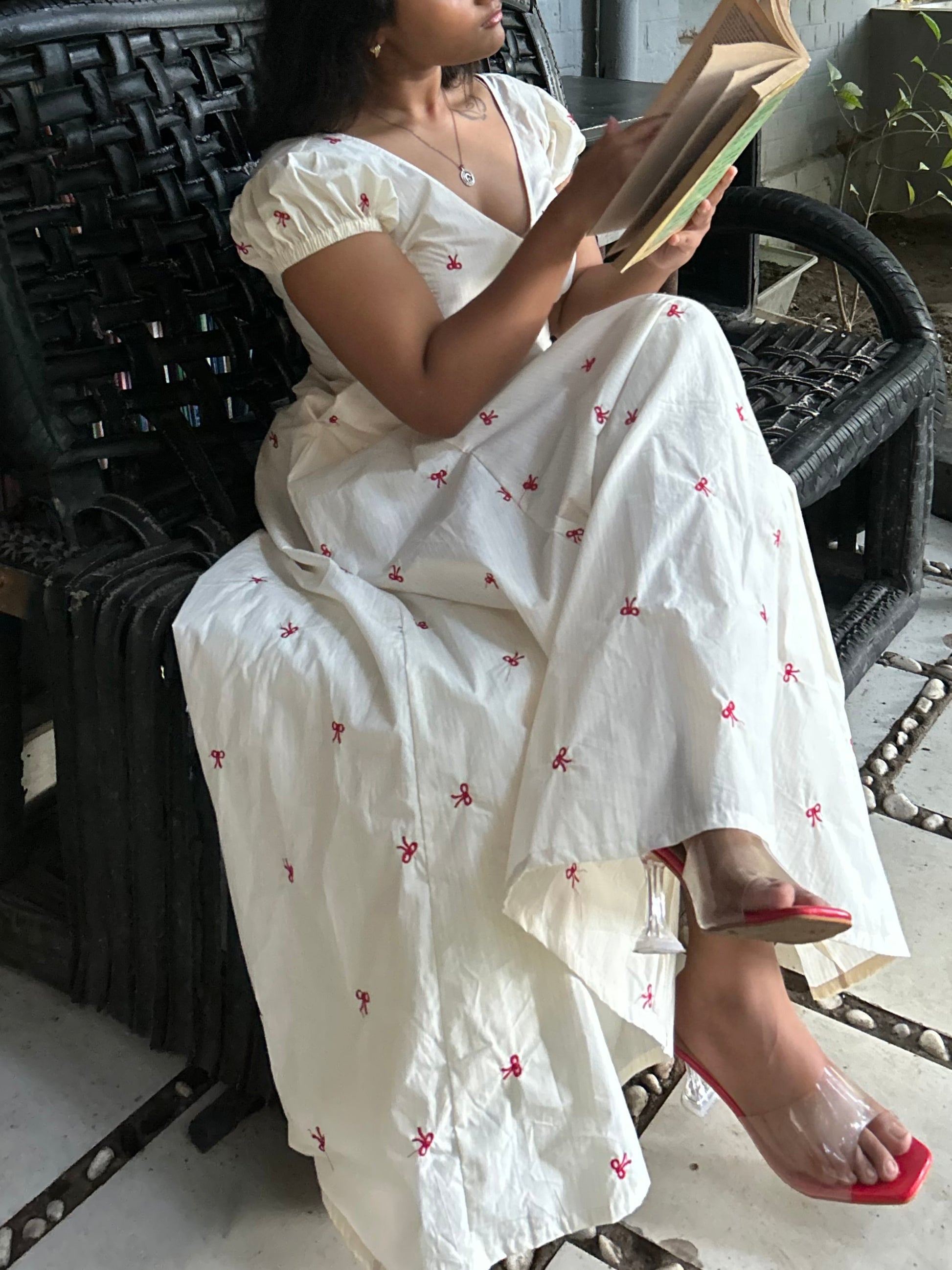 Fit: Structured at the top to gently pull in the bust, flowing into dreamy flares below